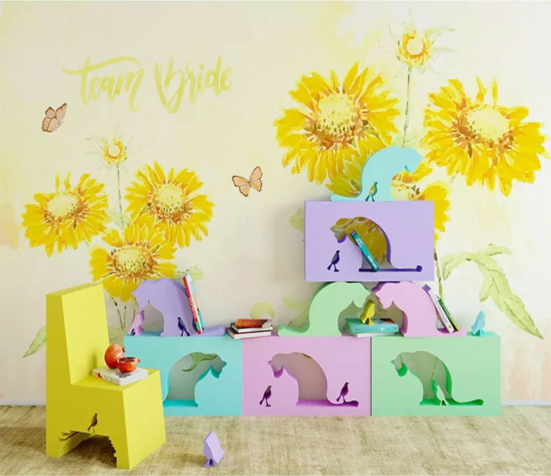 Custom Size 3d Photo Wallpaper Mural Bed Room Hand Drawn Kids Butterfly Sunflower 3d Picture Sofa Backdrop Wallpaper Mural Non Woven Sticker Movie